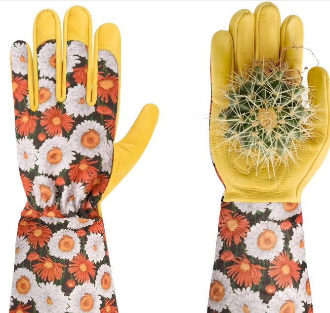 - [Flexible and Breathable] Ergonomic thumbs make it easier to grip gardening tools, and the cowhide leather long garden gloves are flexible and puffy enough to maintain flexibility and breathability for fine motor tasks.